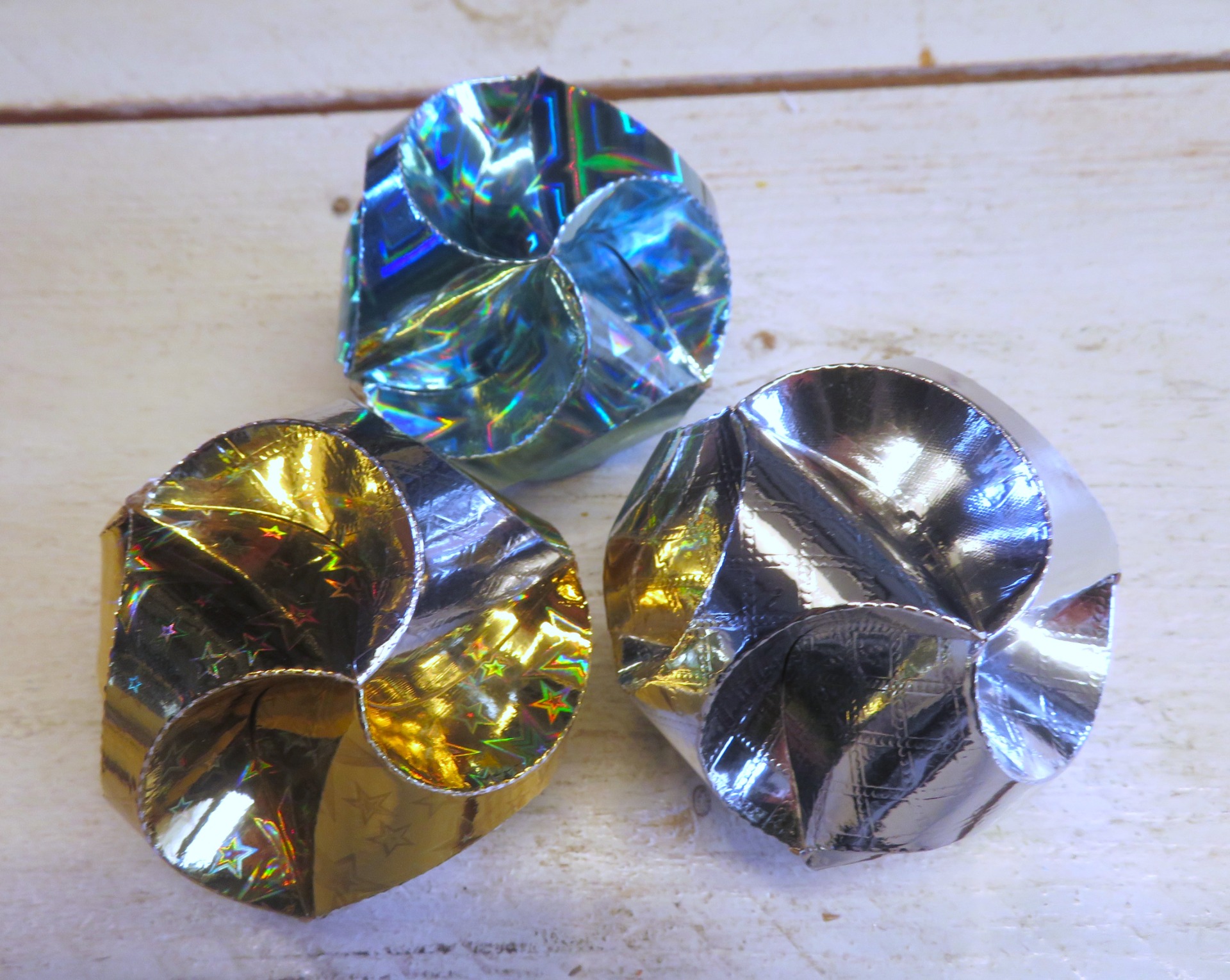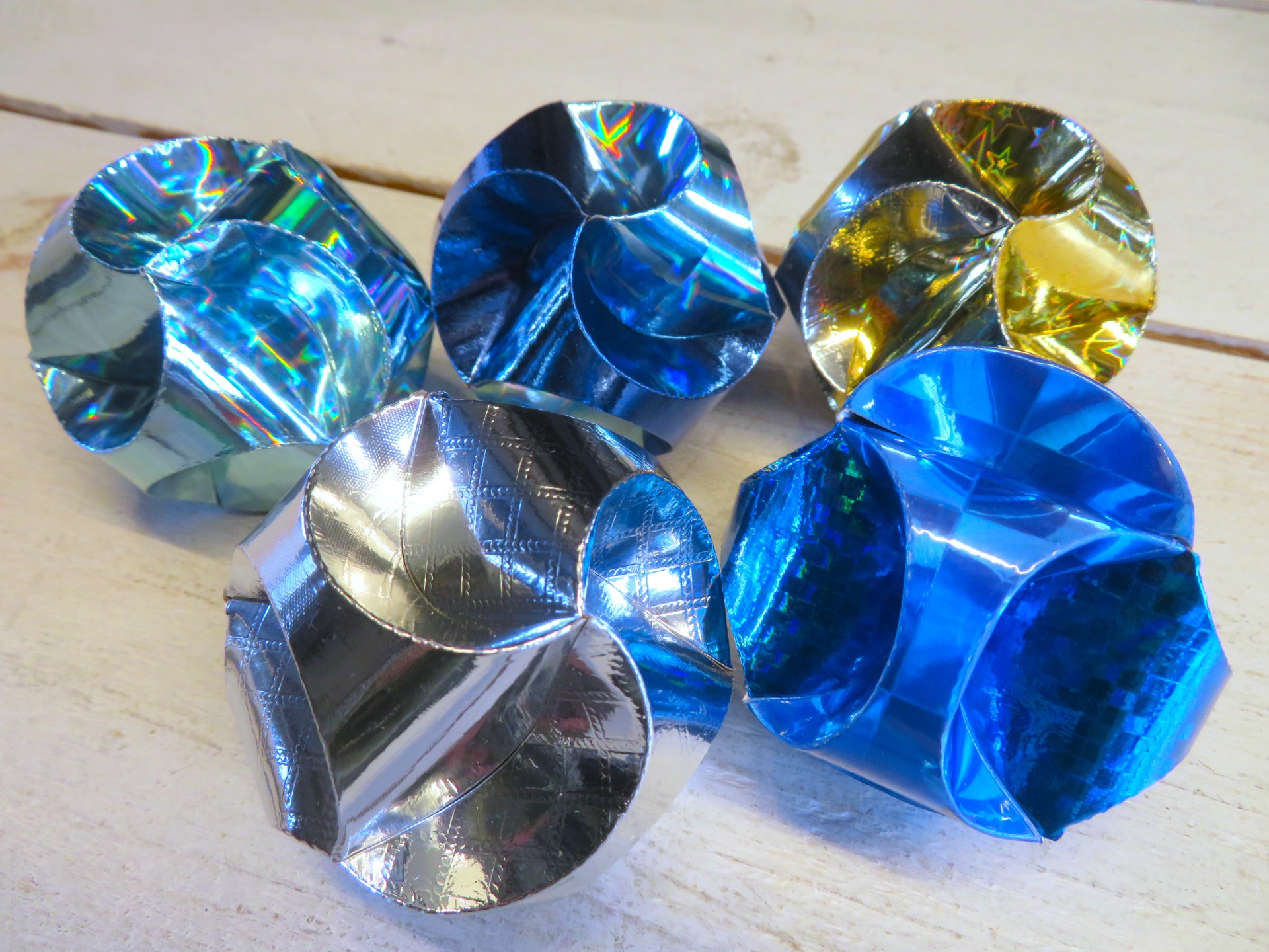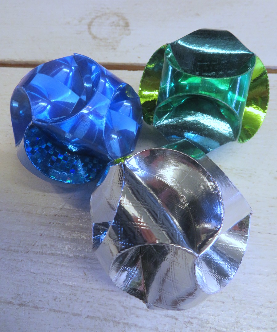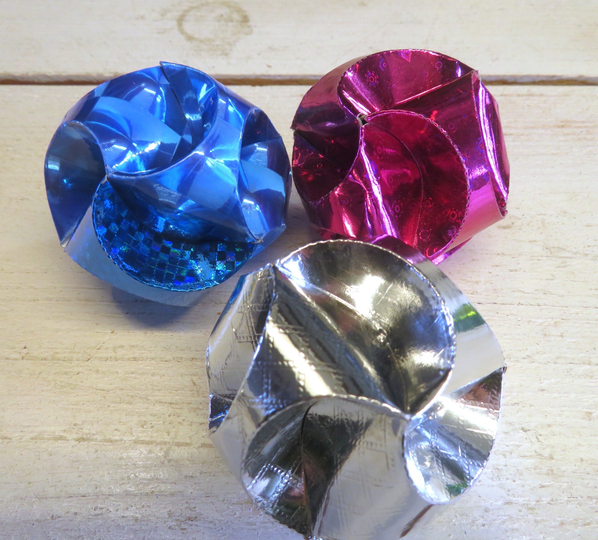 Bal voor klein cadeau. Deze bal kun je zelf vouwen en hier kun je een klein cadeautje in doen of wat geld of een wens.
