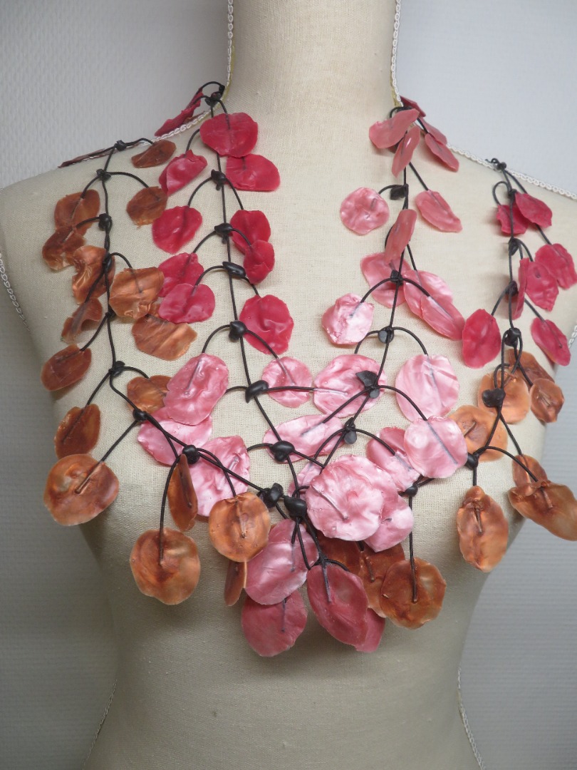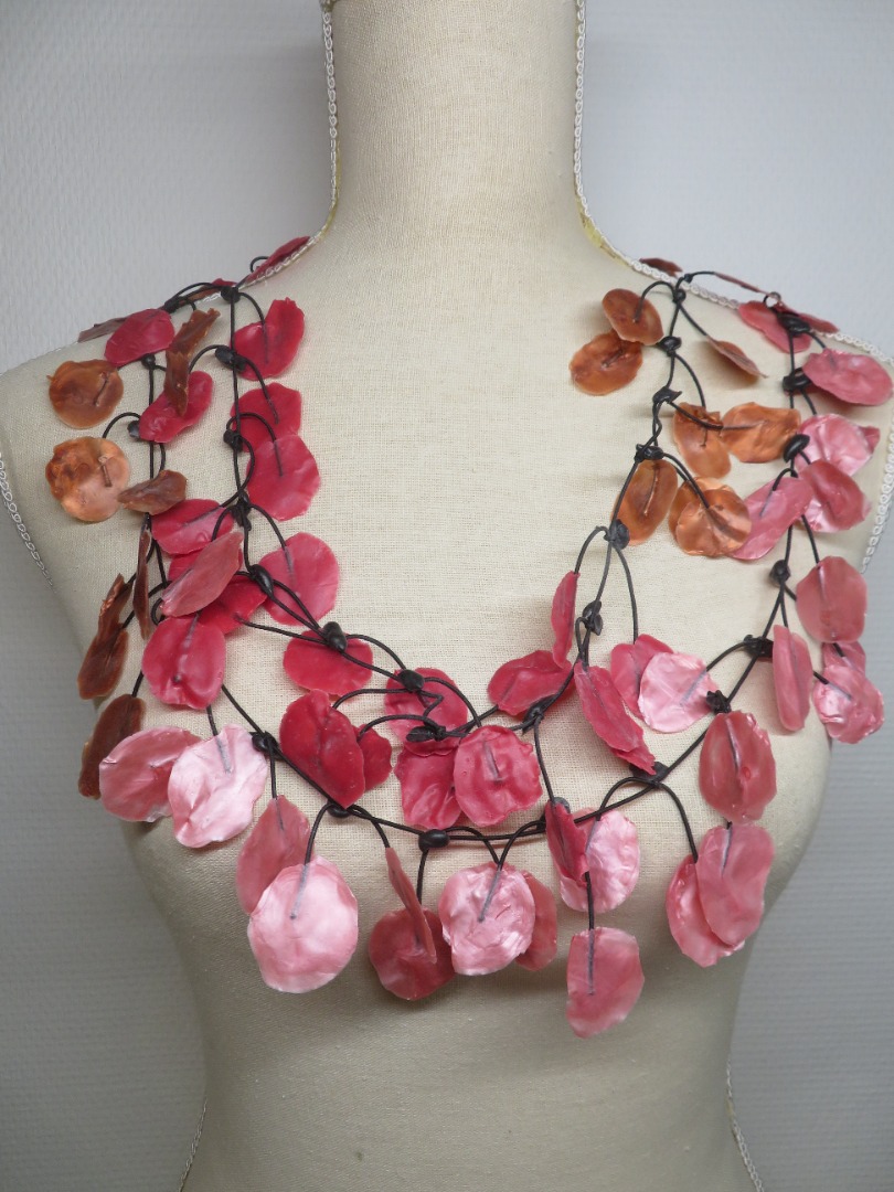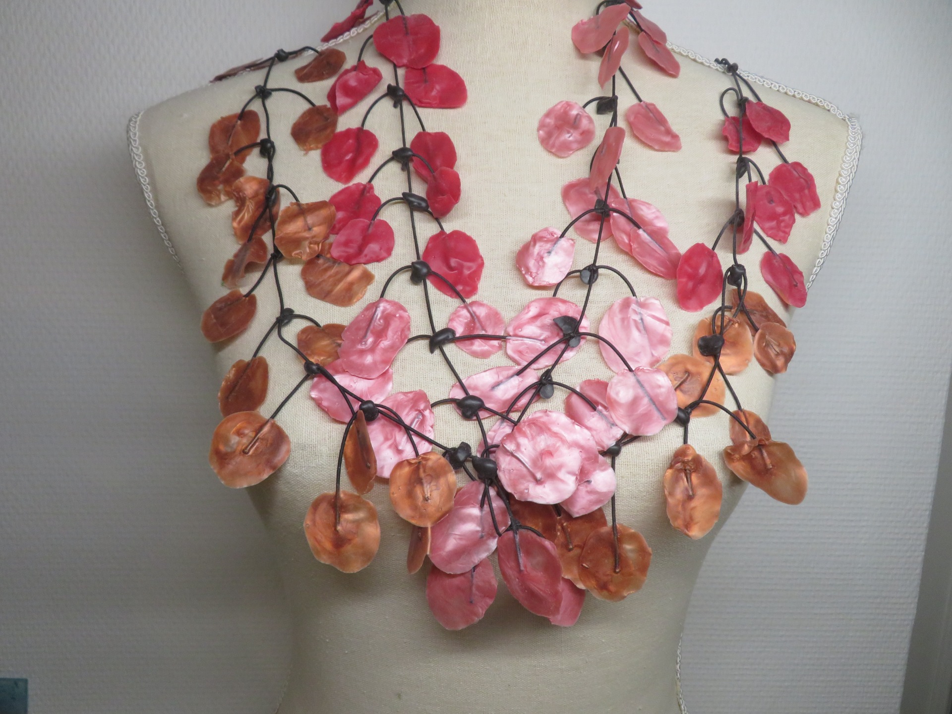 De ketting is van een licht materiaal en geeft een dansend effect, is handgemaakt en daarmee heb je dus een unieke ketting.